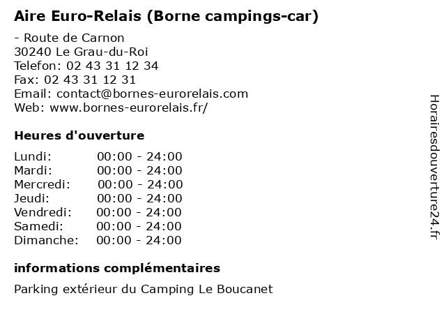 1 Aire Euro-Relais (Borne campings-car) (Distance: 3,33 km) - Allée des Peupliers, 34280 La Grande-Motte aire, borne, camping, campings, car, eau, euro, relais, repos, service, stationnement, tourisme, vidange 2 Aire Euro-Relais (Borne campings-car) (Distance: 4,45 km) 320 Route de l'Espiguette, 30240 Le Grau-du-Roi aire, borne, camping, campings, car, eau, euro, relais, repos, service, stationnement, tourisme, vidange 3 Aire Euro-Relais (Borne campings-car) (Distance: 5,71 km) - Route de l'Espiguette, 30240 Le Grau-du-Roi aire, borne, camping, campings, car, eau, euro, relais, repos, service, stationnement, tourisme, vidange 4 Aire Euro-Relais (Borne campings-car) (Distance: 5,71 km) - Route de l'Espiguette, 30240 Le Grau-du-Roi aire, borne, camping, campings, car, eau, euro, relais, repos, service, stationnement, tourisme, vidange 5 Aire Euro-Relais (Borne campings-car) (Distance: 10,64 km) 180 Avenue du Général Trouchaud, 30220 Saint-Laurent-d'Aigouze aire, borne, camping, campings, car, eau, euro, relais, repos, service, stationnement, tourisme, vidange 6 Aire Park Réservation - Aire de services pour Camping-cars (Distance: 2,57 km) - Rue du Commandant Marceau, 30240 Le Grau-du-Roi aire, arrêt, camping, camping car, cars, de, park, pour, repos, réservation, services, trajet, transports |