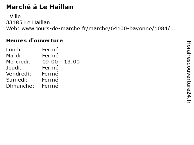 1 Marché à Saint-Aubin-de-Médoc (Distance: 0,00 km) . Ville, 33160 Saint-Aubin-de-Médoc aubin, de, frutas, hortalizas, marché, mercado, médoc, saint, verduras 2 Marché à Saint-Médard-en-Jalles (Distance: 0,00 km) . Ville, 33160 Saint-Médard-en-Jalles en, frutas, hortalizas, jalles, marché, mercado, médard, saint, verduras 3 Le Marché de Léopold - Eysines (Distance: 3,14 km) 317 Avenue du Médoc, 33320 Eysines de, eysines, le, les comptoirs de la bio, léopold, magasin bio, magasin bio 33320, magasin bio eysines, marché 4 Marché à Le Taillan-Médoc (Distance: 3,22 km) . La boetie, 33320 Le Taillan-Médoc frutas, hortalizas, le, marché, mercado, médoc, taillan, verduras 5 Marché à Eysines (Distance: 4,03 km) . Ville, 33320 Eysines eysines, frutas, hortalizas, marché, mercado, verduras 6 Marché à Le Taillan-Médoc (Distance: 4,03 km) . Ville, 33320 Le Taillan-Médoc frutas, hortalizas, le, marché, mercado, médoc, taillan, verduras |