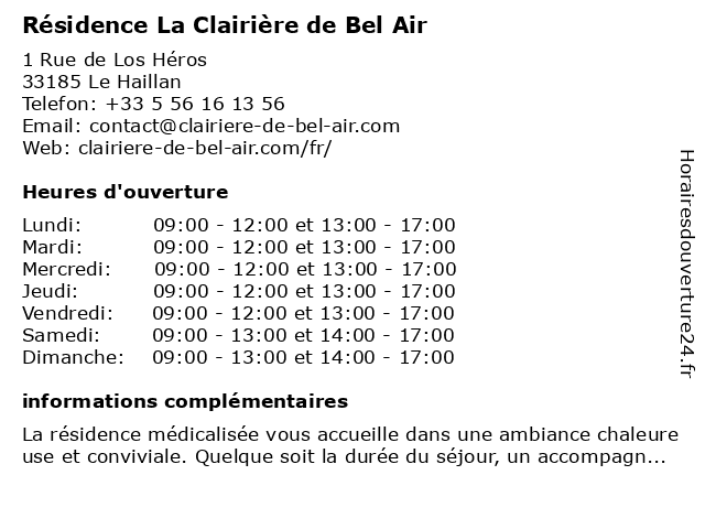 | Lundi | 09:00-12:00 et 13:00-17:00 |