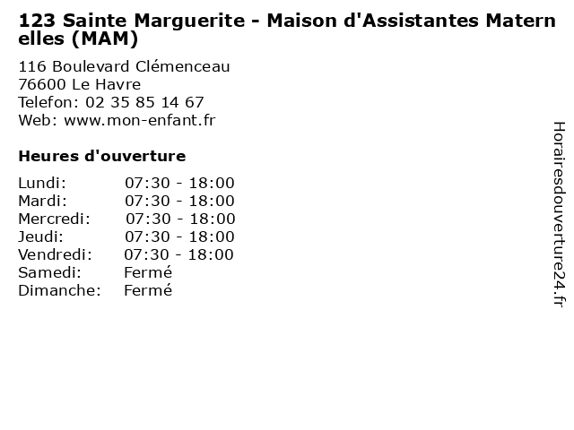 | Lundi | 07:30-18:00 |
