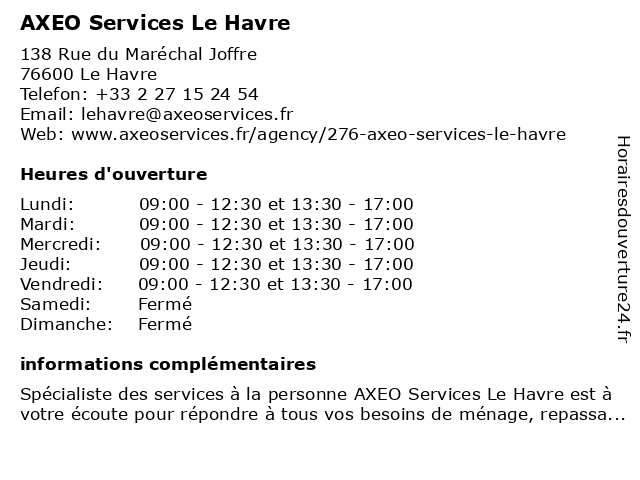 | Lundi | 09:00-12:30 et 13:30-17:00 |
