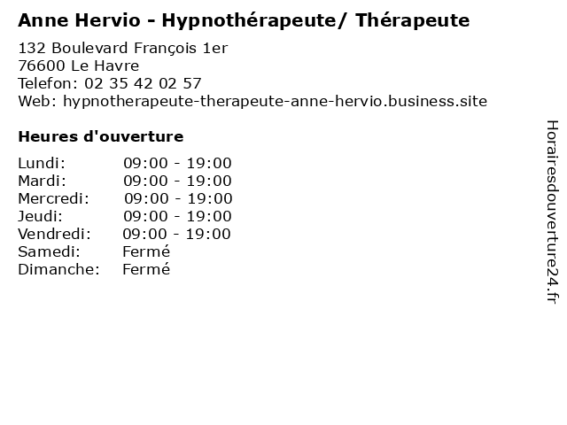 1 Elodie Vieuille - Hypnothérapeute (Distance: 0,18 km) 132 Boulevard François 1er, 76600 Le Havre elodie, hypno, hypnose, hypnothérapeute, sante, vieuille 2 Margaux Szymczak - Hypnothérapeute (Distance: 0,18 km) 132 Boulevard François 1er, 76600 Le Havre hypno, hypnose, hypnothérapeute, margaux, sante, szymczak 3 Sandrine Morineau - Hypnothérapeute (Distance: 0,18 km) 132 Boulevard François 1er, 76600 Le Havre hypnose, hypnotherapeute, hypnothérapeute, morineau, sandrine, sante, soins 4 Lorenzi. Anne Hervio (Distance: 0,19 km) 132 Boulevard François 1er, 76600 Le Havre anne, hervio, lorenzi. 5 Jean Pierre Hervio (Distance: 1,06 km) 33 Rue du Maréchal de Lattre de Tassigny, 76600 Le Havre hervio, jean, pierre 6 Martial Daubenfeld - Hypnothérapeute (Distance: 3,89 km) 73 Boulevard Jules Durand, 76600 Le Havre daubenfeld, hypnose, hypnotherapeute, hypnothérapeute, martial, sante, soins |