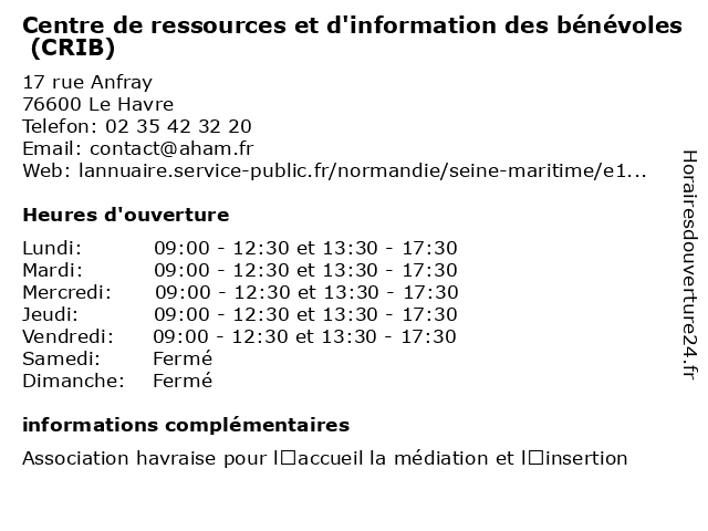 | Mardi | 09:00-12:30 et 13:30-17:30 |