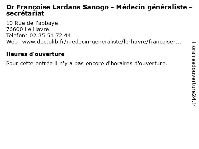 | Appeler Dr Françoise Lardans Sanogo - Médecin généraliste - secrétariat | |