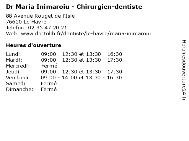 | Vendredi | 09:00-14:00 et 13:30-16:30 |