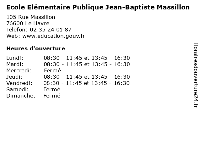 | Mardi | 08:30-11:45 et 13:45-16:30 |
