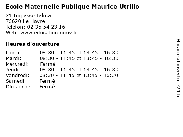 | Mardi | 08:30-11:45 et 13:45-16:30 |