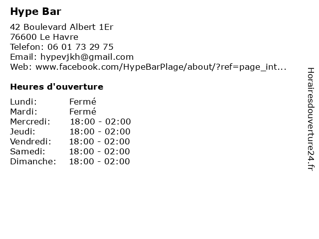 | Mercredi | 18:00-02:00 |