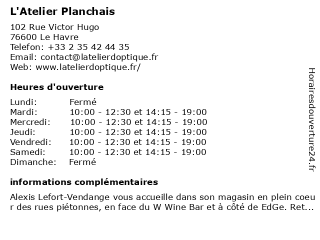| Mercredi | 10:00-12:30 et 14:15-19:00 |