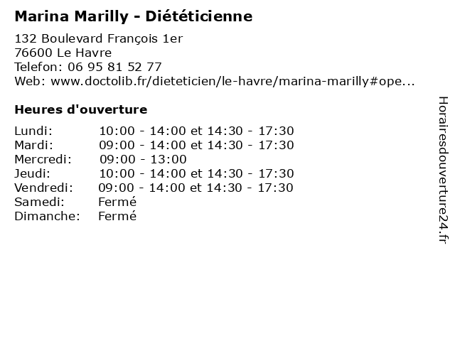 | Lundi | 10:00-14:00 et 14:30-17:30 |