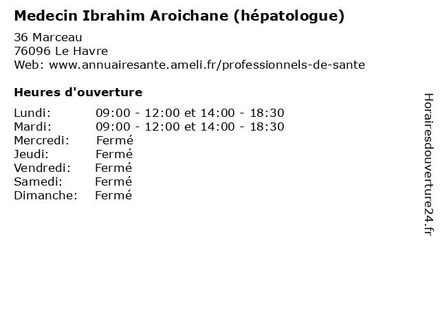| Lundi | 09:00-12:00 et 14:00-18:30 |