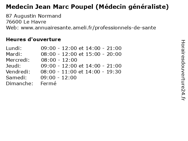 | Lundi | 09:00-12:00 et 14:00-21:00 |