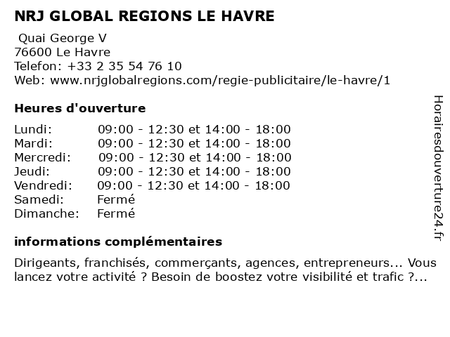 Termes de recherche pour NRJ GLOBAL REGIONS LE HAVRE:le, havre, global, régions, nrj |