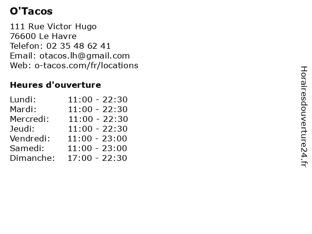 1 O'Tacos (Distance: 6,91 km) - La Lézarde, 76290 Montivilliers fast food, french tacos, o'tacos, restaurant, restauration rapide, sandwich, tacos, tacos français 2 O'Cooking Tacos (Distance: 2,18 km) 230 Rue Aristide Briand, 76600 Le Havre cooking, fast food, livraison, o'cooking, repas, restaurants, tacos 3 4 Tacos Delice (Distance: 3,06 km) 3 Rue Pierre Guillaume Petit, 76620 Le Havre delice, restaurants, tacos, tacous 5 Le Mistral Tacos (Distance: 8,76 km) 22 Rue Felix Faure, 76290 Montivilliers mistral, restaurants, tacos 6 Zina Tacos (Distance: 8,76 km) 22 Rue Felix Faure, 76290 Montivilliers cuisine, les boissons, restaurants, restauration, tacos, zina |