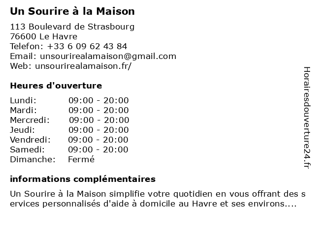1 Un Jour Ailleurs (Distance: 0,42 km) 22 Rue Casimir Périer, 76600 Le Havre accessoires, ailleurs, habillement, jour, mode, pret à porter, un, vetements 2 Un Moment Pour Soi (Distance: 0,64 km) 16 Place du Général de Gaulle, 76600 Le Havre moment, pour, soi, un 3 un Monde des Saveurs (Distance: 1,40 km) 190 Rue Aristide Briand, 76600 Le Havre alimentation, conserves, des, monde, saveurs, thé, un, vins, épicerie 4 Pour un Garçon (Distance: 11,96 km) 13 rue cachin, 14600 Honfleur beauté, coiffure, femmes, garçon, hommes, mixte, pour, salon, style, un 5 Un Truc Simple (Distance: 11,98 km) 38 bis rue Cachin, 14600 Honfleur couleur, design, enseignes, entreprise, impression, numerique, projet, qualite, simple, truc, un, visuelle 6 Un Jour Ailleurs (Distance: 13,89 km) - Avenue de Normandie, 14600 Honfleur ailleurs, boutiques, jour, robe, un, vestes, vetemenes |
