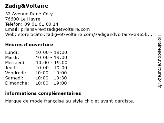 2 Zadig&Voltaire (Distance: 15,48 km) 13 Rue Lucien Barrière, 14800 Deauville magasin de vêtements pour hommes, magasin d’accessoires de mode, zadig&voltaire 3 Zadig & Voltaire (petites vacances scolaires) (Distance: 15,42 km) 13 Rue Lucien Barrière, 14800 Deauville accessoires, mode, petites, scolaires, vacances, vetements, voltaire, zadig 4 Zadig & Voltaire (juillet/août) (Distance: 15,42 km) 13 Rue Lucien Barrière, 14800 Deauville accessoires, juillet/août, mode, vetements, voltaire, zadig 5 Zadig & Voltaire - Eté et vacances scolaires (Distance: 15,54 km) 13 Rue Edmond Blanc, 14800 Deauville accessoires, et, eté, mode, scolaires, vacances, vetements, voltaire, zadig, été 6 Zadig & Voltaire - Hiver (Distance: 15,54 km) 13 Rue Edmond Blanc, 14800 Deauville accessoires, hiver, mode, vetements, voltaire, zadig |