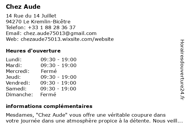 1 Mimi Coiffure - Chez Bélaid (Distance: 0,09 km) 3 rue Danton, 94270 Le Kremlin-Bicêtre barbier, bélaid, chez, coiffeur, coiffure, coupe, homme, mimi 2 Chez Ma-no (Distance: 0,12 km) 40 rue du Général Leclerc, 94270 Le Kremlin-Bicêtre brasserie, café, chez, ma, no, restaurant, restauration 3 Restaurant Chez Pierre (Distance: 0,28 km) 58 Avenue de Fontaibleau, 94270 Le Kremlin-Bicêtre brasserie, café, chez, pierre, restaurant, restauration 4 Café Chez Pierre (Distance: 0,28 km) 58 Avenue Avenue De Fontainebleau, 94270 Kremlin-Bicêtre café, chez, pierre 5 Chez Moba Kabe (Distance: 0,40 km) Chez Moba Kabe, 94270 Le Kremlin Bicetre chez, kabe, levine, miguel, moba, restaurants 6 |