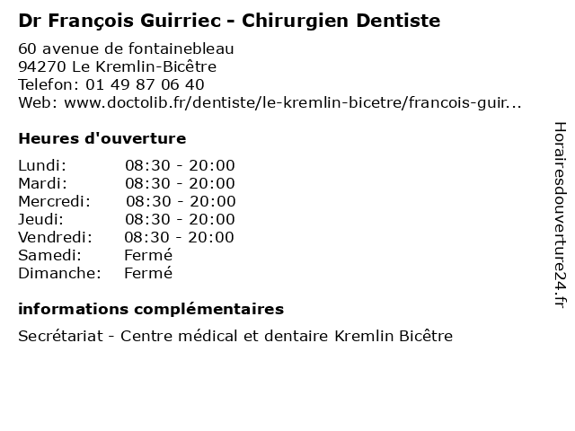 Termes de recherche pour Dr François Guirriec - Chirurgien Dentiste:francois, centre, dentaire, medical, bicêtre, kremlin, dr, dentiste, chirurgien, guirriec, 94270 |