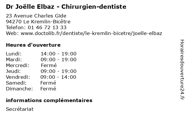 1 Joëlle de Montille - Hypnothérapeute (Distance: 2,49 km) 51 Boulevard Auguste Blanqui, 75013 Paris de, hypno, hypnose, hypnothérapeute, joëlle, montille, sante 2 Dr Pascale Elbaz - Dentiste (Distance: 2,71 km) 70 Rue du Père Corentin, 75014 Paris care, clinic, dentist, dentiste, dr, elbaz, france, health, pascale, service 3 Dr. Pascale Elbaz - Dentiste (Distance: 2,71 km) 70 Rue du Pere Corentin, 75014 Paris dentiste, docteur, dr., elbaz, medecins, pascale, sante 4 Dr Ilanit Elbaz-Cohen - Chirurgien-dentiste (Distance: 3,12 km) 4 Rue de Châtillon, 75014 Paris chirurgien, cohen, consultation, dentiste, docteur, dr, elbaz, ilanit, med, secrétariat 6 Insiem Conseil - Joëlle Tubiana (Distance: 3,66 km) 59 Rue Du Moulin Vert, 75014 Paris 14ème conseil, insiem, joëlle, tubiana |