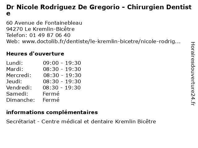 Termes de recherche pour Dr Nicole Rodriguez De Gregorio - Chirurgien Dentiste:de, centre, dentaire, medical, rodriguez, nicole, bicêtre, kremlin, dr, gregorio, dentiste, chirurgien, 94270 |