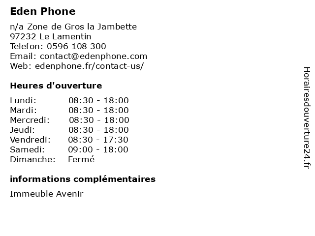 1 Eden Phone (Distance: 4,02 km) 26 Rue Schoelcher, 97200 Fort-de-France accessoire, eden, magasin, phone, services, smartphone, téléphonies 2 Eden Phone (Distance: 4,20 km) 59 Rue Victor Hugo, 97200 Fort-de-France accessoire, eden, magasin, phone, services, smartphone, téléphonies 3 Eden Phone (Distance: 4,38 km) 27 Rue François Arago, 97200 Fort-de-France accessoire, eden, magasin, phone, services, smartphone, téléphonies 4 Eden Phone (Distance: 11,68 km) - Z.A Laugier, 97215 Rivière-Salée accessoire, eden, magasin, phone, services, smartphone, téléphonies 5 Eden Phone (Distance: 15,63 km) - Rue du Brésil, 97220 La Trinité accessoire, eden, magasin, phone, services, smartphone, téléphonies 6 Eden Meca (Distance: 0,50 km) lotissement Hauts Californie Espace laouchez, 97232 Lamentin (le) eden, meca |