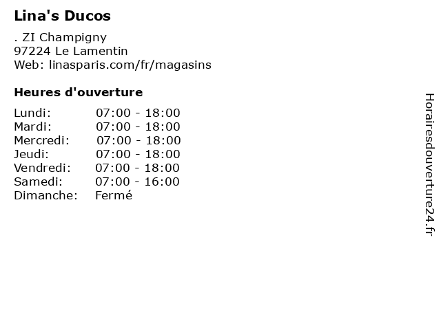 1 Lina's (Distance: 4,03 km) . rue du Trou au Chat, 97232 Le Lamentin boissons, lina's, pâtisseries, restauration, snack 2 Lina's (Distance: 4,53 km) . place d'Armes, 97232 Le Lamentin boissons, lina's, pâtisseries, restauration, snack 3 Lina's (Distance: 6,63 km) . ZI de la Jambette, 97232 Le Lamentin boissons, lina's, pâtisseries, restauration, snack 4 Diamant Distribution Ducos (Distance: 6,63 km) . La Jambette, 97232 Le Lamentin diamant, distribution, ducos, publics, services 5 Lina's (Distance: 9,53 km) 15 rue Victor Hugo, 97200 Fort de France boissons, lina's, pâtisseries, restauration, snack 6 AXA Assurance CEDRIC LINA (Distance: 17,88 km) 53 Avenue du Brésil, 97220 La Citerne assurance, assurance appartement, assurance auto, assurance entreprise, assurance epargne, assurance habitation, assurance maison, assurance professionnelle, assurance santé, assurance voiture, axa, banque, cedric, lina |
