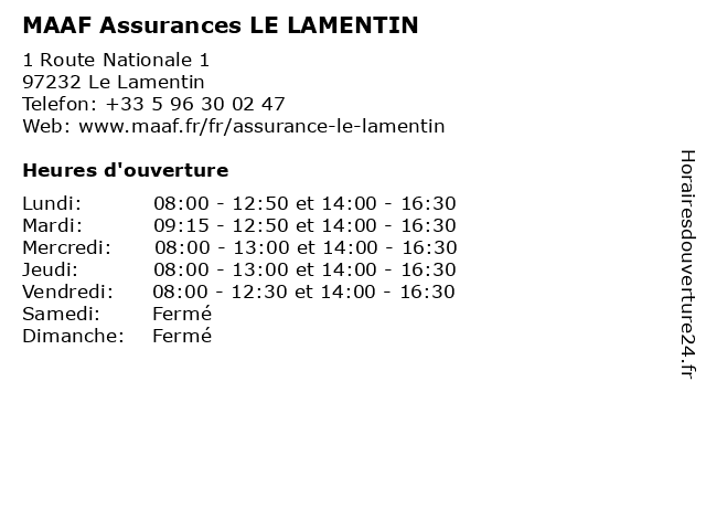 | Dimanche | Fermé |