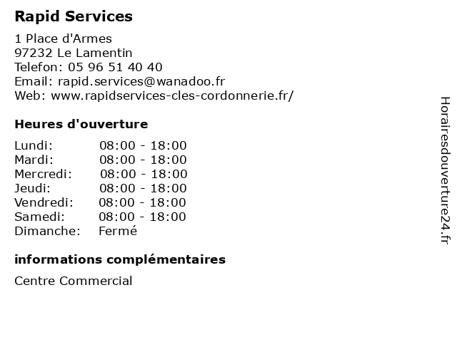 | Lundi | 08:00-18:00 |