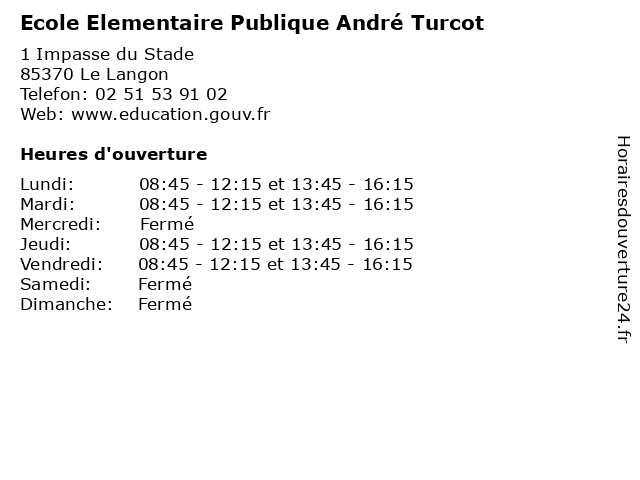1 Ecole Maternelle Publique André Turcot (Distance: 0,00 km) 1 Impasse du Stade, 85370 Le Langon andré, cours, ecole, education, maternelle, publique, services, turcot, école 2 Ecole Elementaire Publique-Langon (Distance: 3,99 km) . Rue de l'école, 41320 Langon cours, ecole, elementaire, langon, publique, services 3 Ecole Elementaire Publique 123 Soleil (Distance: 6,50 km) 17 Rue Jacques de Maupéou, 85200 Auchay-sur-Vendée 123, cours, ecole, education, elementaire, publique, services, soleil, école, élémentaire 4 Ecole Elementaire Publique Magellan (Distance: 7,48 km) 23 Route des Fontaines, 85200 Auchay-sur-Vendée cours, ecole, education, elementaire, magellan, publique, services, école, élémentaire 5 École Elementaire Publique Benjamin Julien Garos (Distance: 10,20 km) 9 Place de la Mairie Fontaines, 85200 Doix lès Fontaines benjamin, cours, education, elementaire, garos, julien, publique, services, École, école, élémentaire 6 École Elementaire Publique René Jaulin (Distance: 10,75 km) 97 Rue Villa de la Gallo Romaine, 85200 Fontenay-le-Comte cours, education, elementaire, jaulin, publique, rené, services, École, école, élémentaire |