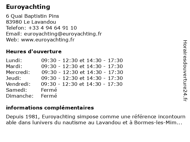 Depuis 1981, Euroyachting simpose comme une référence incontournable dans lunivers du nautisme au Lavandou et à Bormes-les-Mimosas. Entreprise familiale passionnée et engagée, Euroyachti...