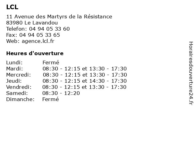 1 LCL (Distance: 10,96 km) 223 Avenue Albert Roux, 83250 La-Londe-les-Maures agence, assurance, bancaire, banque, lcl 2 LCL (Distance: 13,79 km) 175 Avenue des Alliés, 83240 Cavalaire-sur-Mer agence, assurance, bancaire, banque, lcl 3 LCL (Distance: 18,61 km) 27 Avenue Georges Clémenceau, 83310 Cogolin agence, assurance, bancaire, banque, lcl 4 LCL (Distance: 19,45 km) 4 Avenue Joseph Clotis, 83400 Hyères agence, assurance, bancaire, banque, lcl 6 |