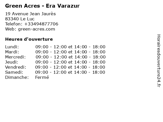| Lundi | 09:00-12:00 et 14:00-18:00 |