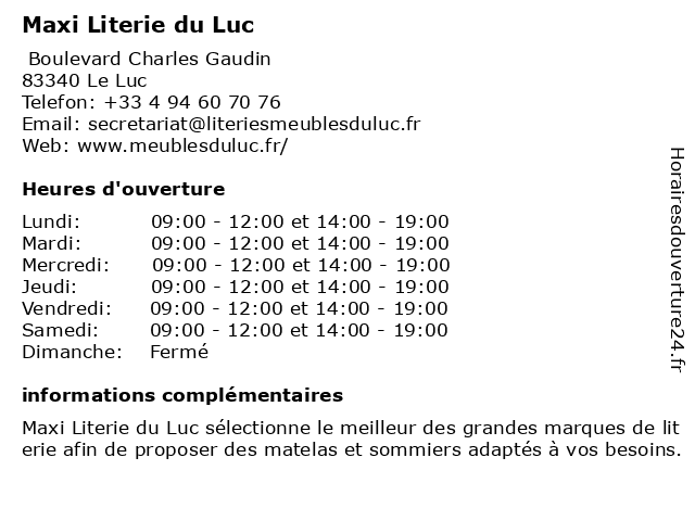 | Mardi | 09:00-12:00 et 14:00-19:00 |