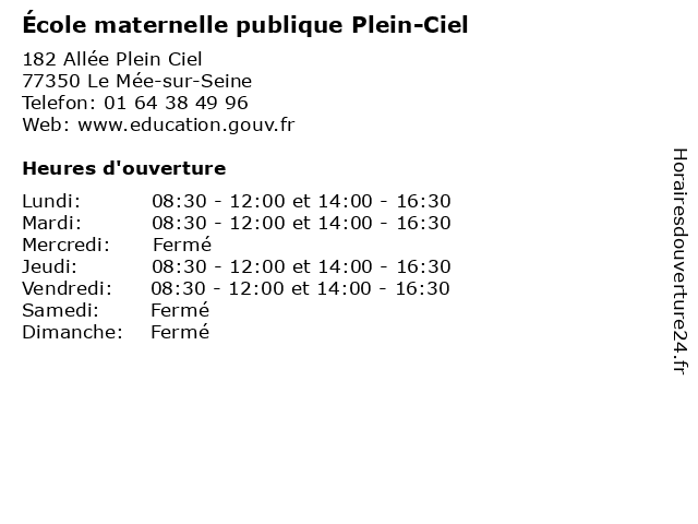 | Mardi | 08:30-12:00 et 14:00-16:30 |