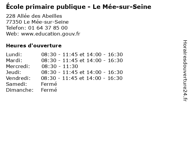 | Mardi | 08:30-11:45 et 14:00-16:30 |