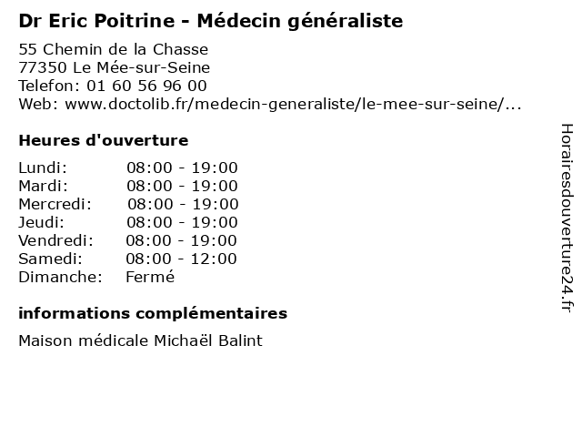| Mercredi | 08:00-19:00 |