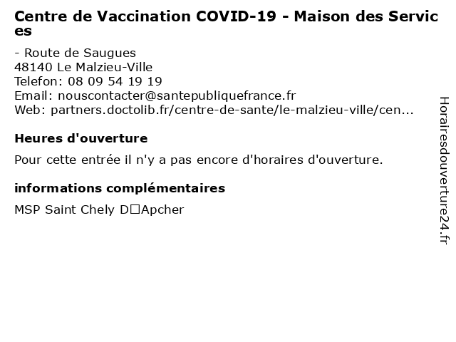 | Appeler Centre de Vaccination COVID-19 - Maison des Services | |