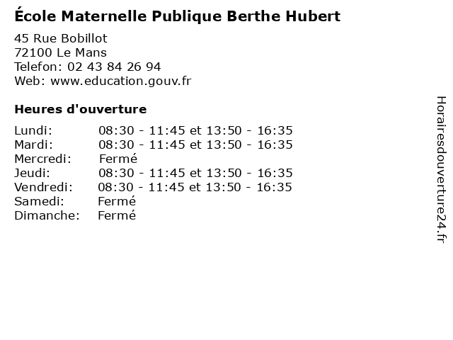 | Mardi | 08:30-11:45 et 13:50-16:35 |