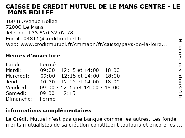 Termes de recherche pour CAISSE DE CREDIT MUTUEL DE LE MANS CENTRE - LE MANS BOLLEE:le, de, mans, centre, crédit, mutuel, caisse, bollée |