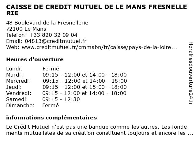 Termes de recherche pour CAISSE DE CREDIT MUTUEL DE LE MANS FRESNELLERIE:le, de, mans, crédit, mutuel, caisse, fresnellerie |