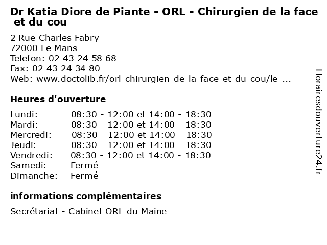 | Lundi | 08:30-12:00 et 14:00-18:30 |