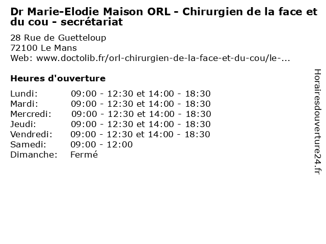 | Lundi | 09:00-12:30 et 14:00-18:30 |