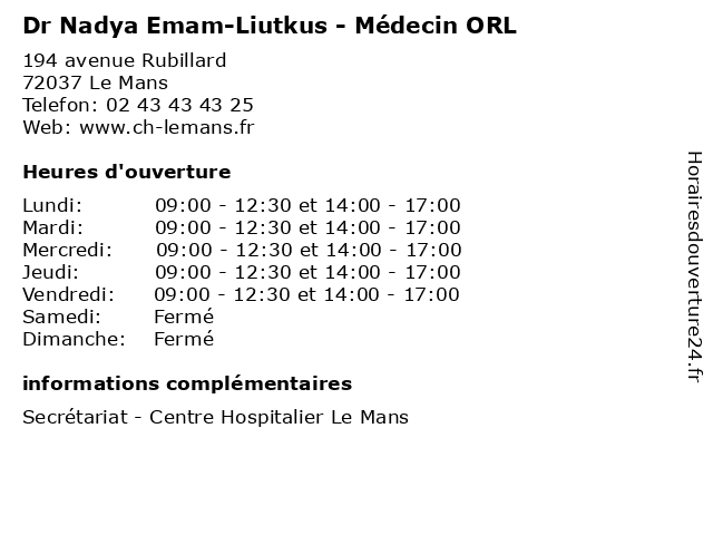 | Lundi | 09:00-12:30 et 14:00-17:00 |