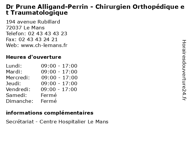 Termes de recherche pour Dr Prune Alligand-Perrin - Chirurgien Orthopédique et Traumatologique:et, le, mans, centre, orthopedie, perrin, hospitalier, prune, orthopédique, dr, chirurgien, traumatologie, traumatologique, alligand, trauma |