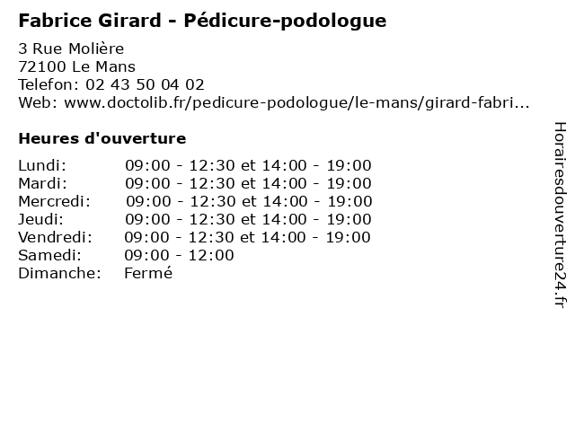 | Lundi | 09:00-12:30 et 14:00-19:00 |