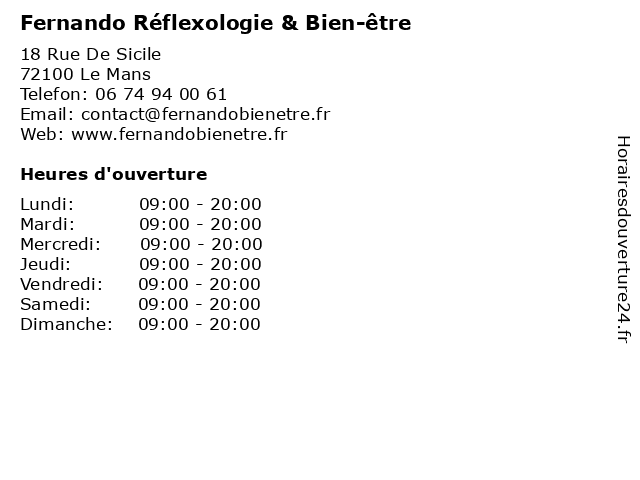 | Lundi | 09:00-20:00 |