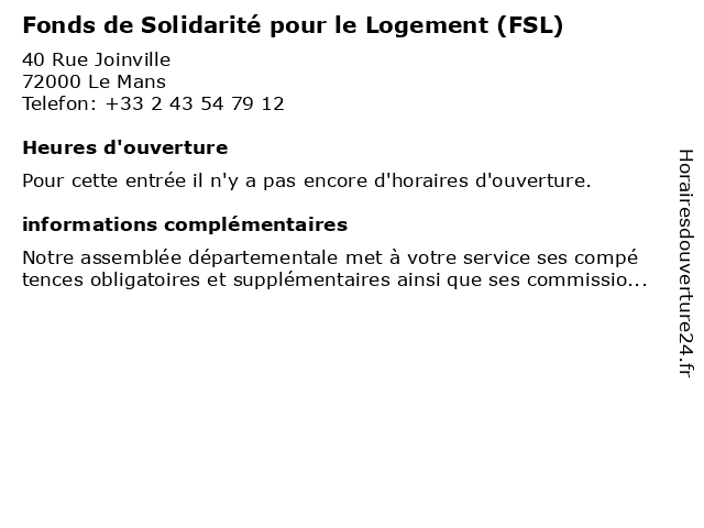 | Appeler Fonds de Solidarité pour le Logement (FSL) | |