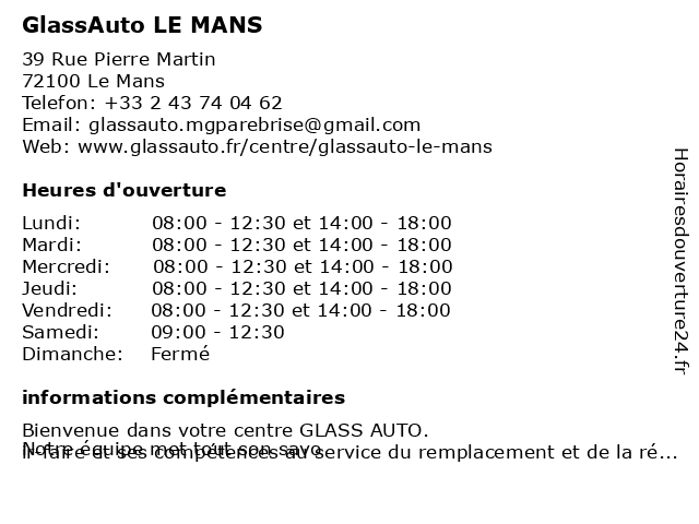 | Lundi | 08:00-12:30 et 14:00-18:00 |