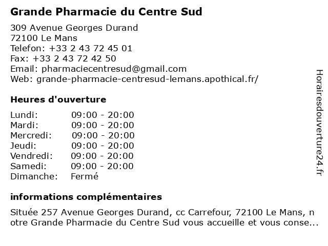 | Samedi | 09:00-20:00 |