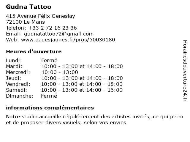 | Vendredi | 10:00-13:00 et 14:00-18:00 |